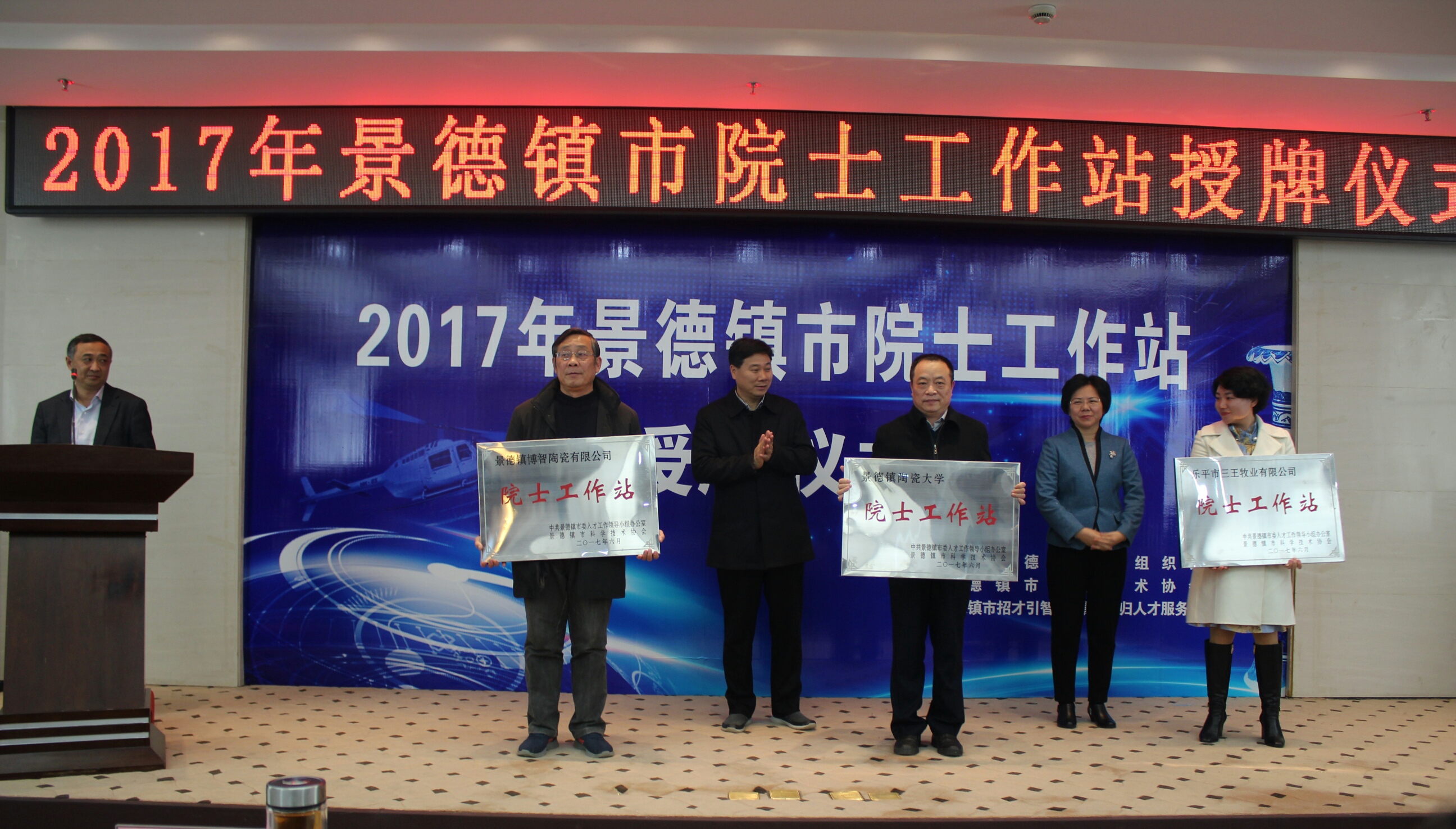 在2018年即将来临之际,我市在紫晶宾馆隆重举行了2017年景德镇市院士工作站授牌仪式。市委书记钟志生,市委副书记、市长梅亦,市委副书记、常务副市长刘锋分别为景德镇陶瓷大学院士工作站、乐平市三王牧业有限公司院士工作站、景德镇博智陶瓷有限公司院士工作站授牌。授牌仪式由刘锋主持。