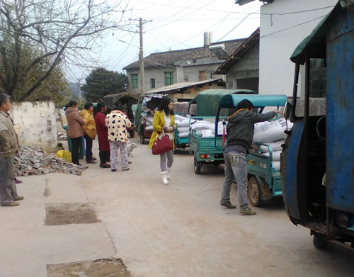 12月26日下午,浮梁县鹅湖镇园艺新村浮梁县玉韵农产品专业合作社的仓库里,10多户茶农正在将一包包有机肥搬运到停在屋外的三轮车上,这是合作社理事长曹丽平个人花16万多元购买的80吨有机肥,全部免费分送给大家用于改良茶山土壤结构,增加茶叶产量和提高茶叶品质。