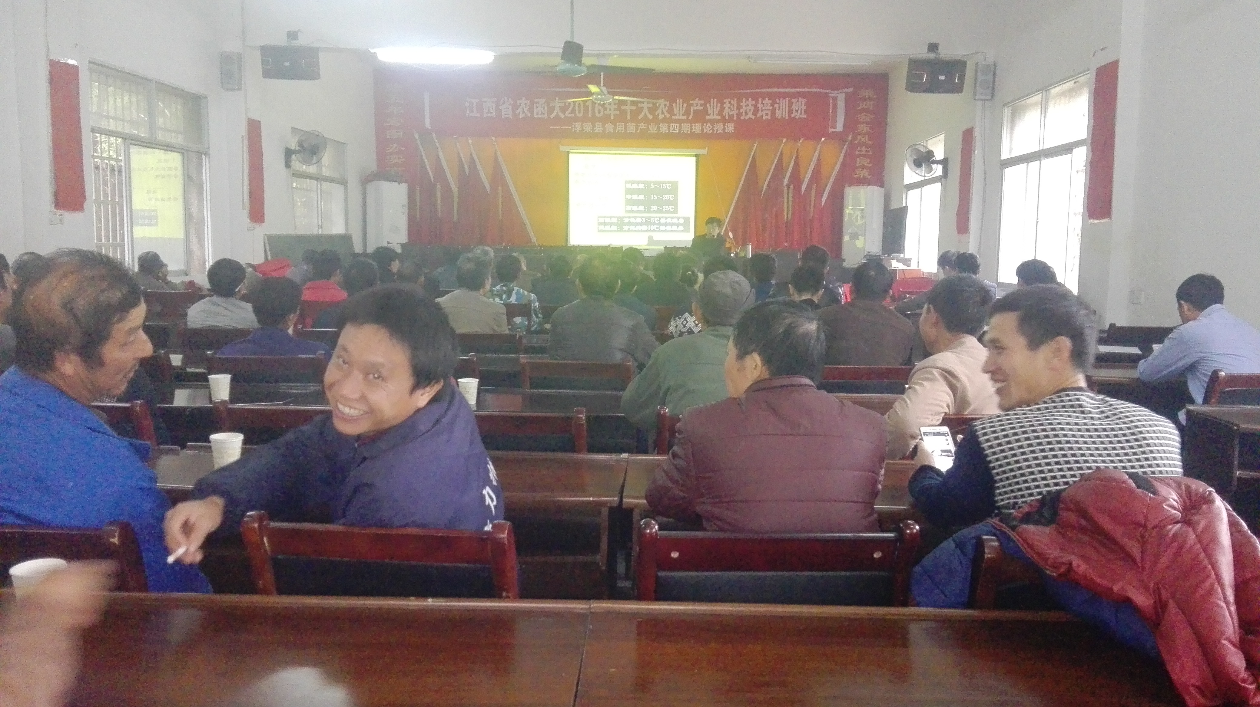 11月18日,浮梁县农函大在寿安镇举办了第四期食用菌产业化技术培训班,省农函大产业化班指导员周泓、吴伟、县科协主席何俊、副主席黄永平和各个乡镇的农户共计80余人参加了此次的集中培训和实地教学。