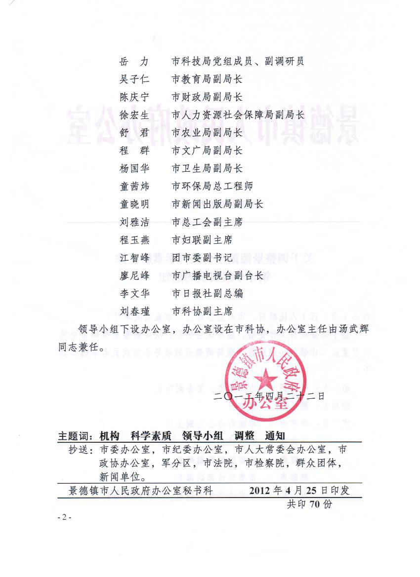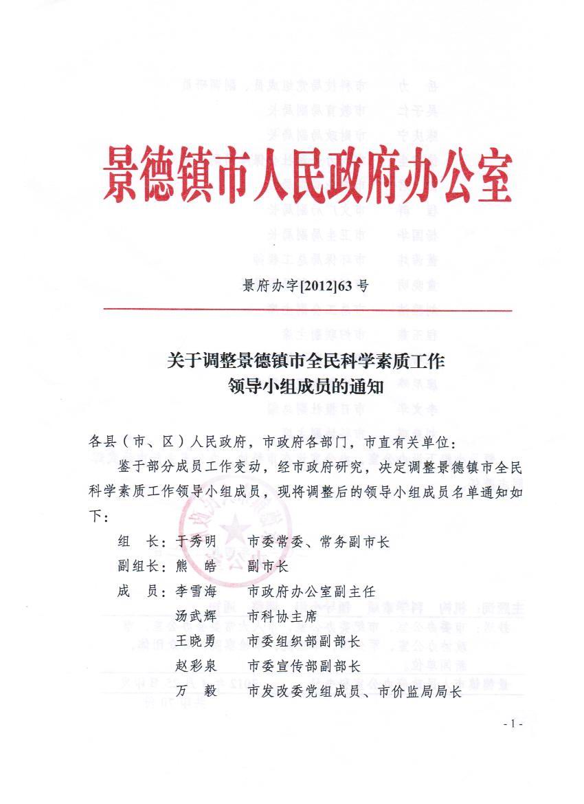 关于调整景德镇市全民科学素质工作领导小组成员的通知