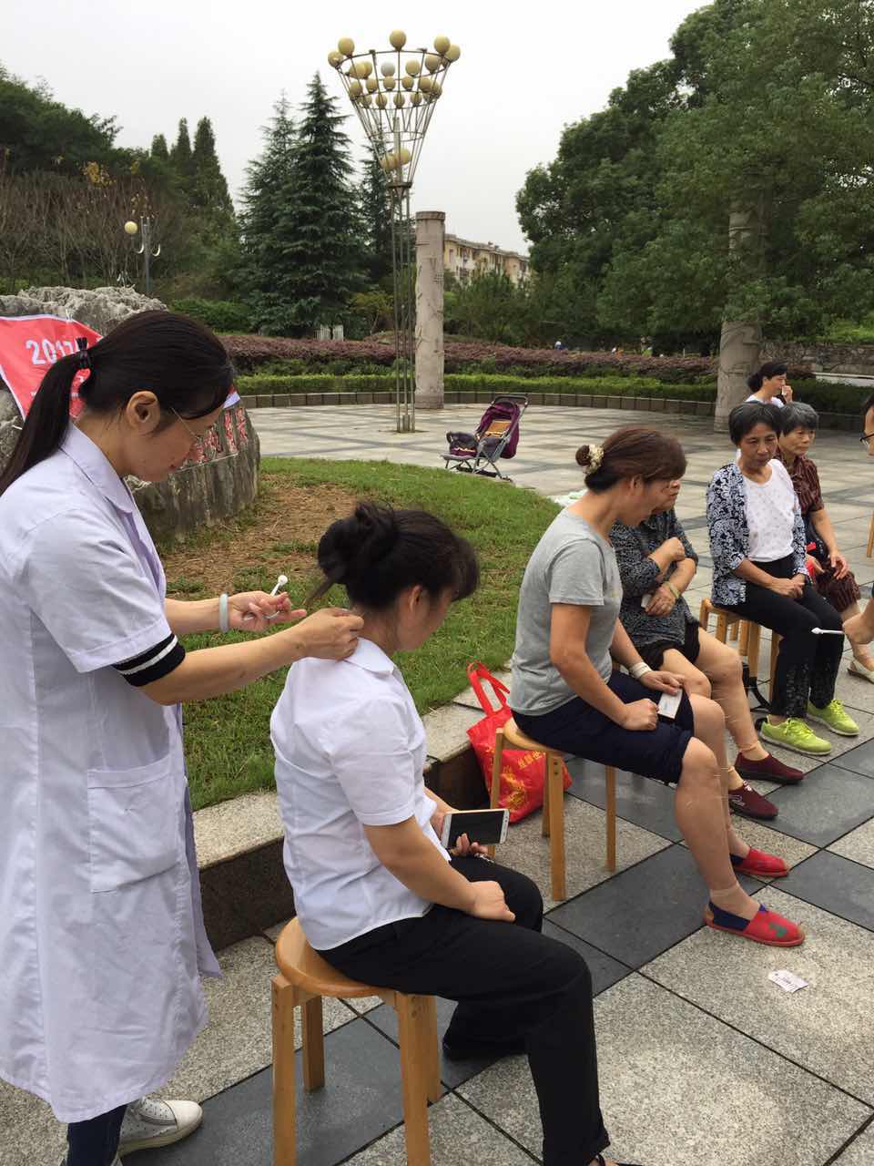 2017年9月22日,景德镇市中医医院针灸康复科由李志明主任领队, 在东郊602所开展义诊活动,为当地居民免费体检、诊治。